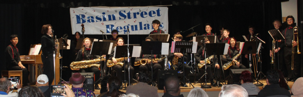 Our Intermission Band is The Tevis Ranger Jazz Ensemble from Bakersfield California. It is made up of a select group of 7th and 8th grade musicians from Tevis Junior High in the PanamaBuena Vista Union School District. Under the direction of BSR member Kelly Willey, the band has proudly represented their school and district at many events including the Bakersfield Jazz Workshop, Bakersfield College Jazz Day, various local service clubs and are often called on by the district Superintendent to perform at fundraisers and special events put on by the district. They are happy to be back playing for the Basin Street Regulars and are honored to be a part of the club’s 50th birthday celebration. Over the last several years many Tevis Rangers have attended the Teagarden Jazz Camp in Pollack Pines, funded by scholarships from the Basin Street Regulars.